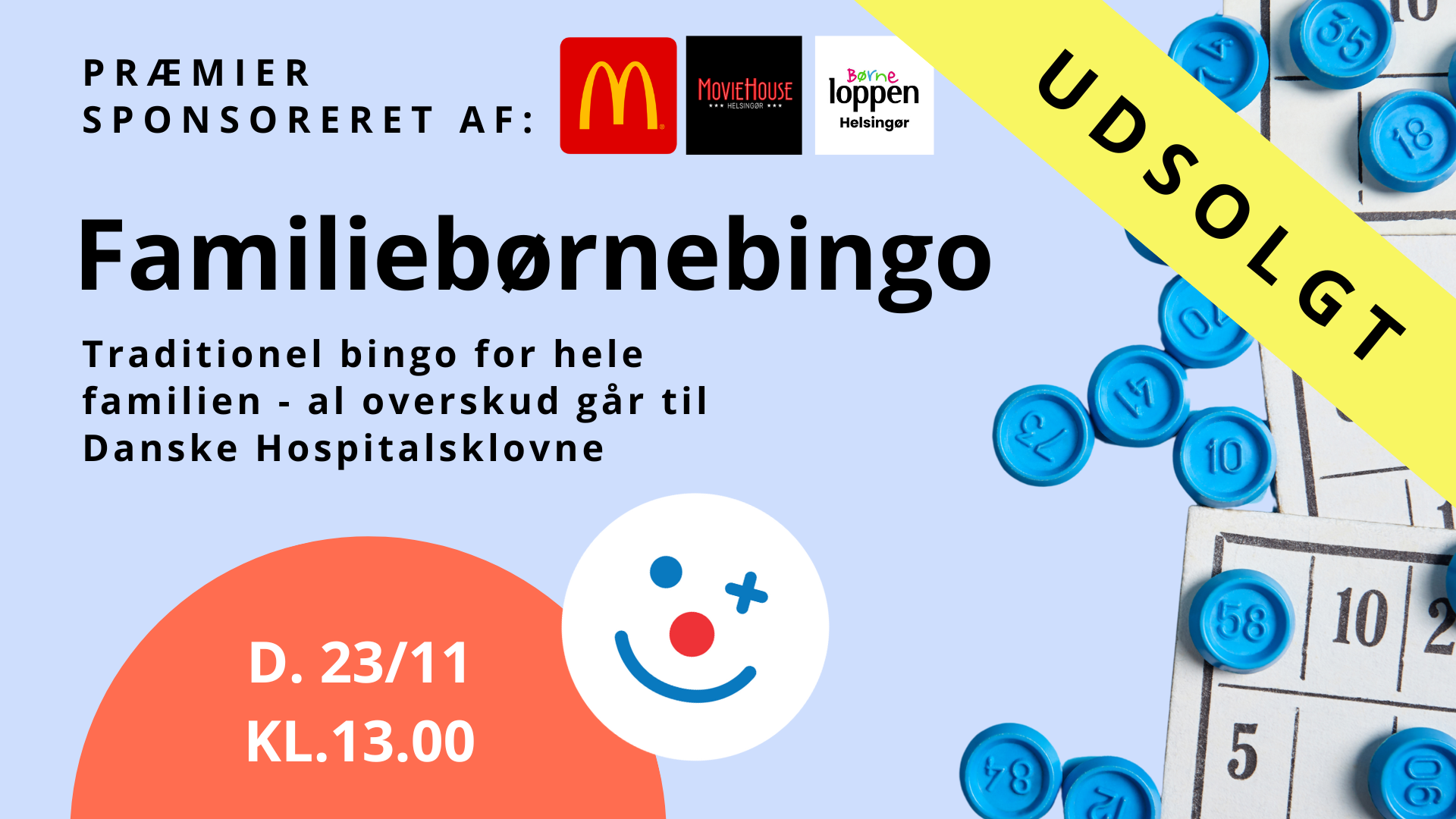 23/11 Familiebørnebingo - spil med og støt Danske Hospitalsklovne UDSOLGT