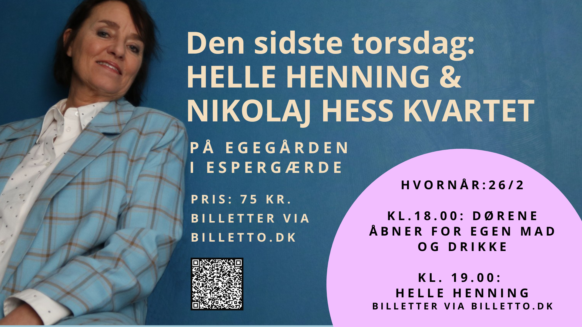 26/2: Den sidste torsdag: Den sidste torsdag: HELLE HENNING & NIKOLAJ HESS KVARTET