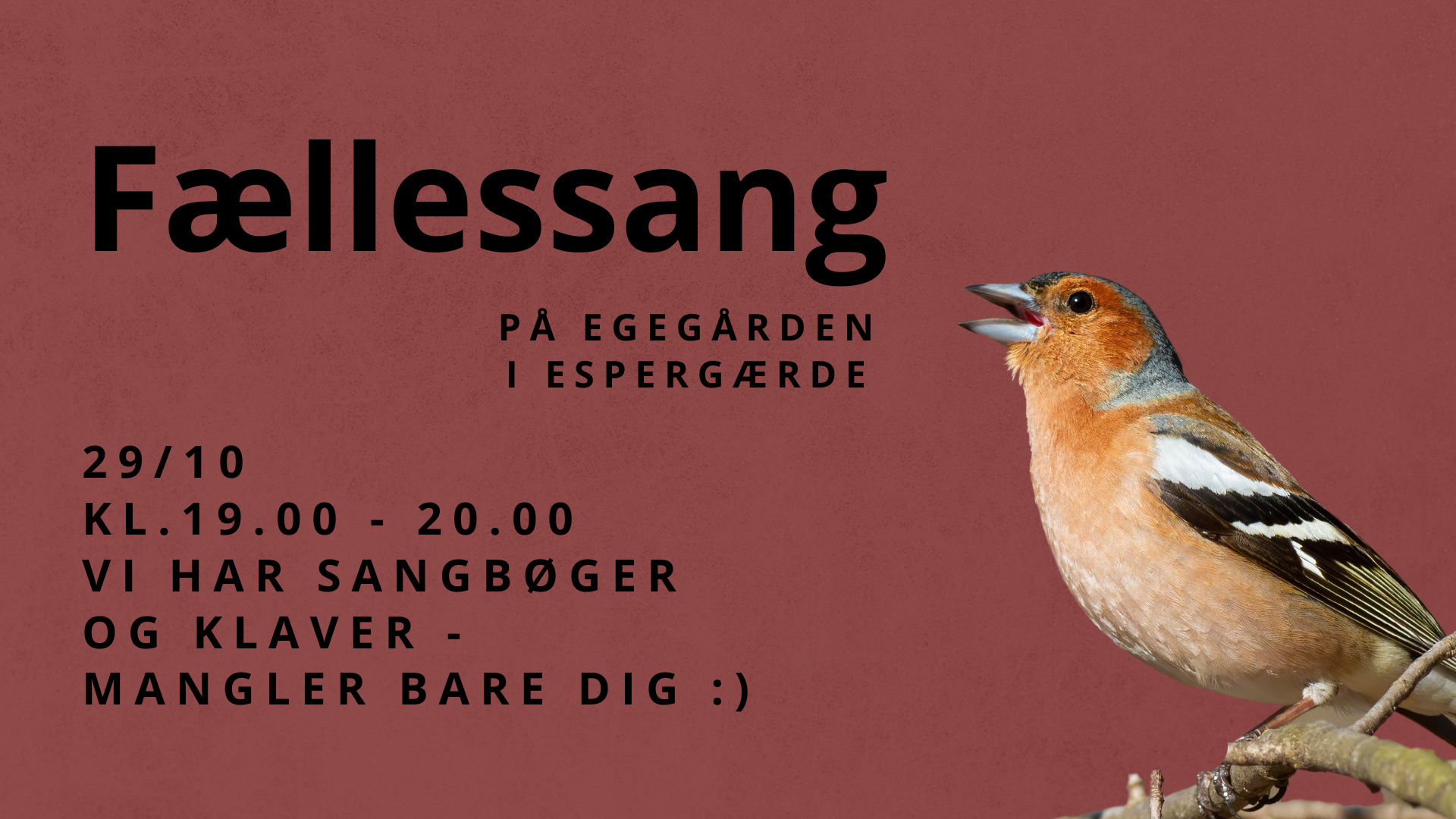 Her kan du se alle vores åbne arrangementer og begivenheder- du er også velkommen til at foreslå eller stå for et arrangement, der kan samle lokalområdet. Kontakt os for yderligere info.